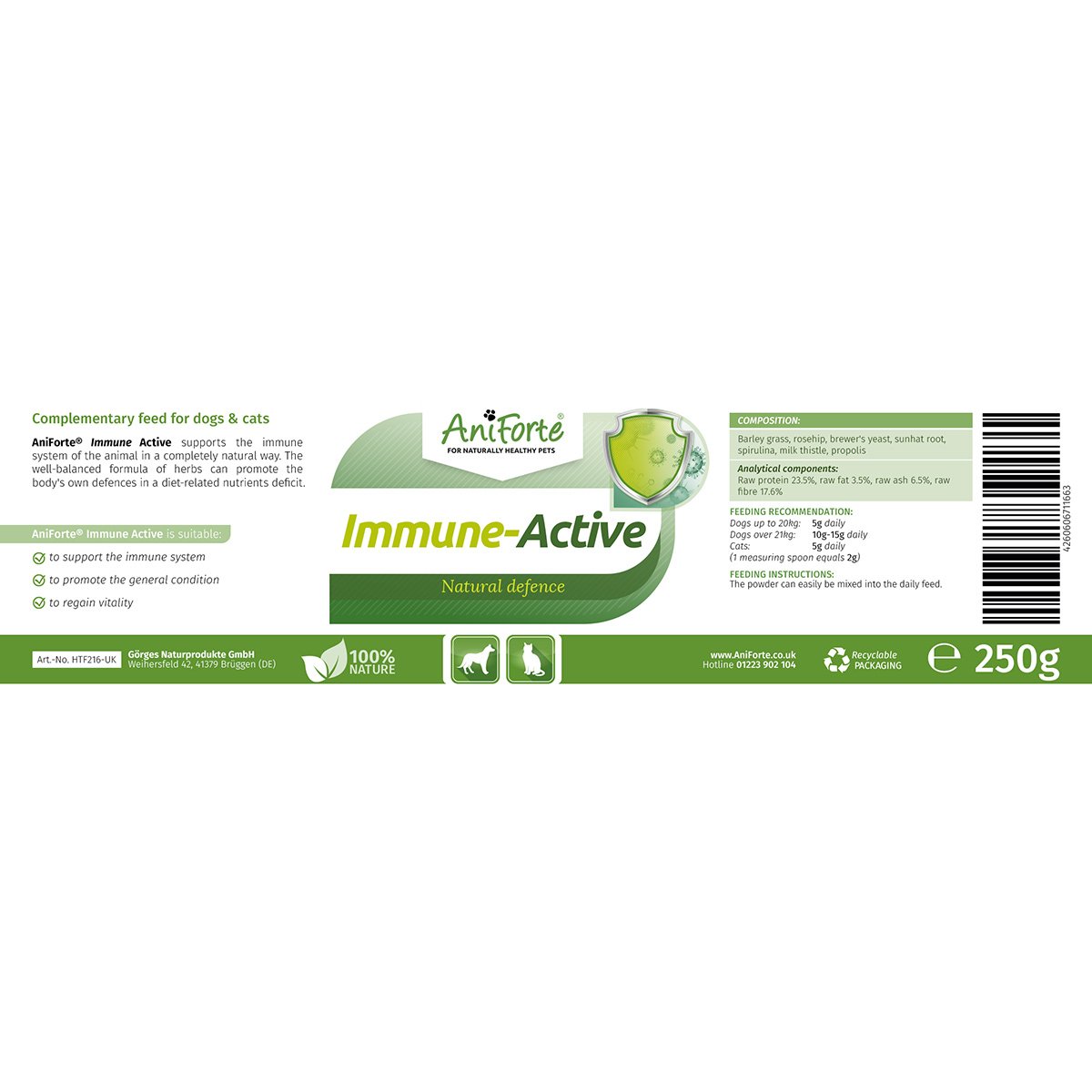 AniForte Immune-Active 250g is a complementary powder supplement for dogs and cats. The well-balanced formula of herbs may support the immune system and promote the body's own defences.
