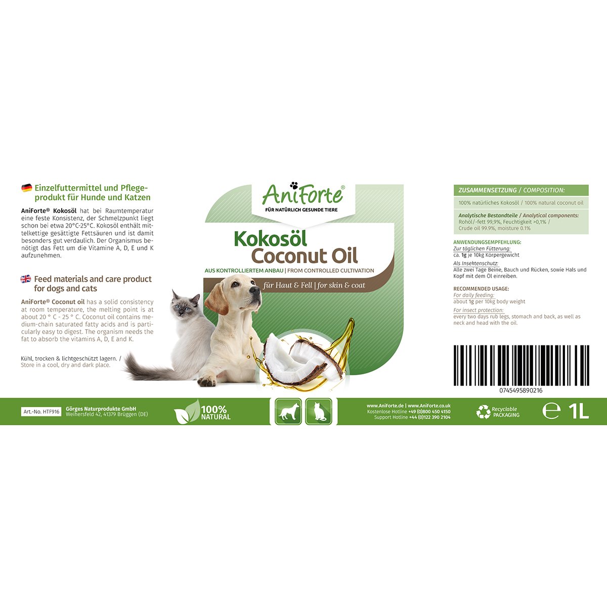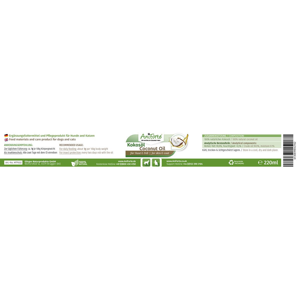 AniForte Coconut Oil is a complementary feed for dogs and cats. It is known as a healthy source of energy and has a repellent effect against insects like ticks and mosquitos.