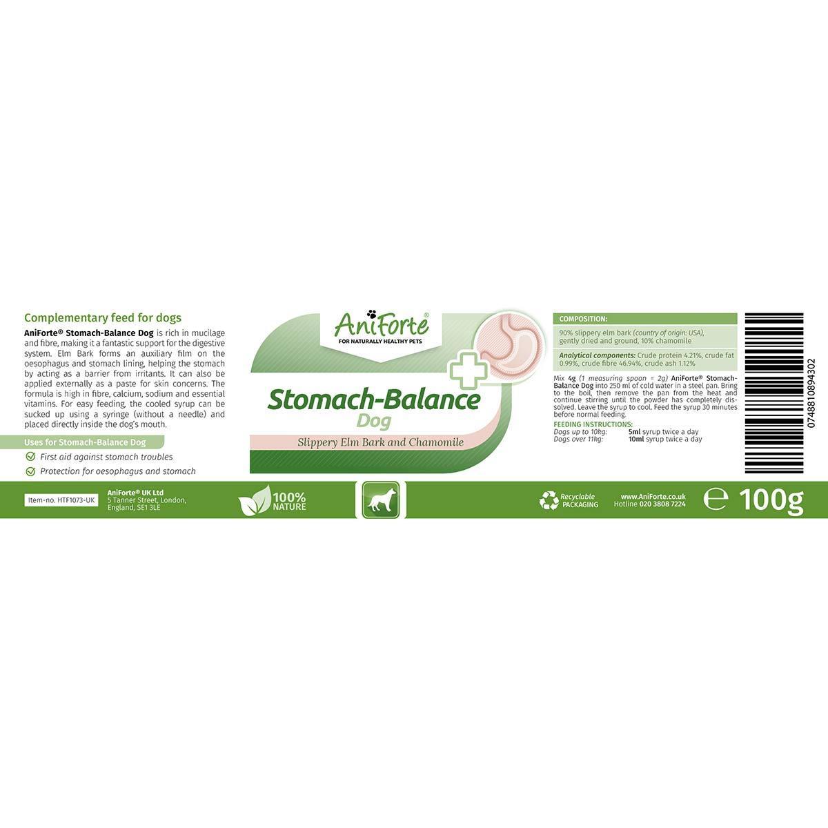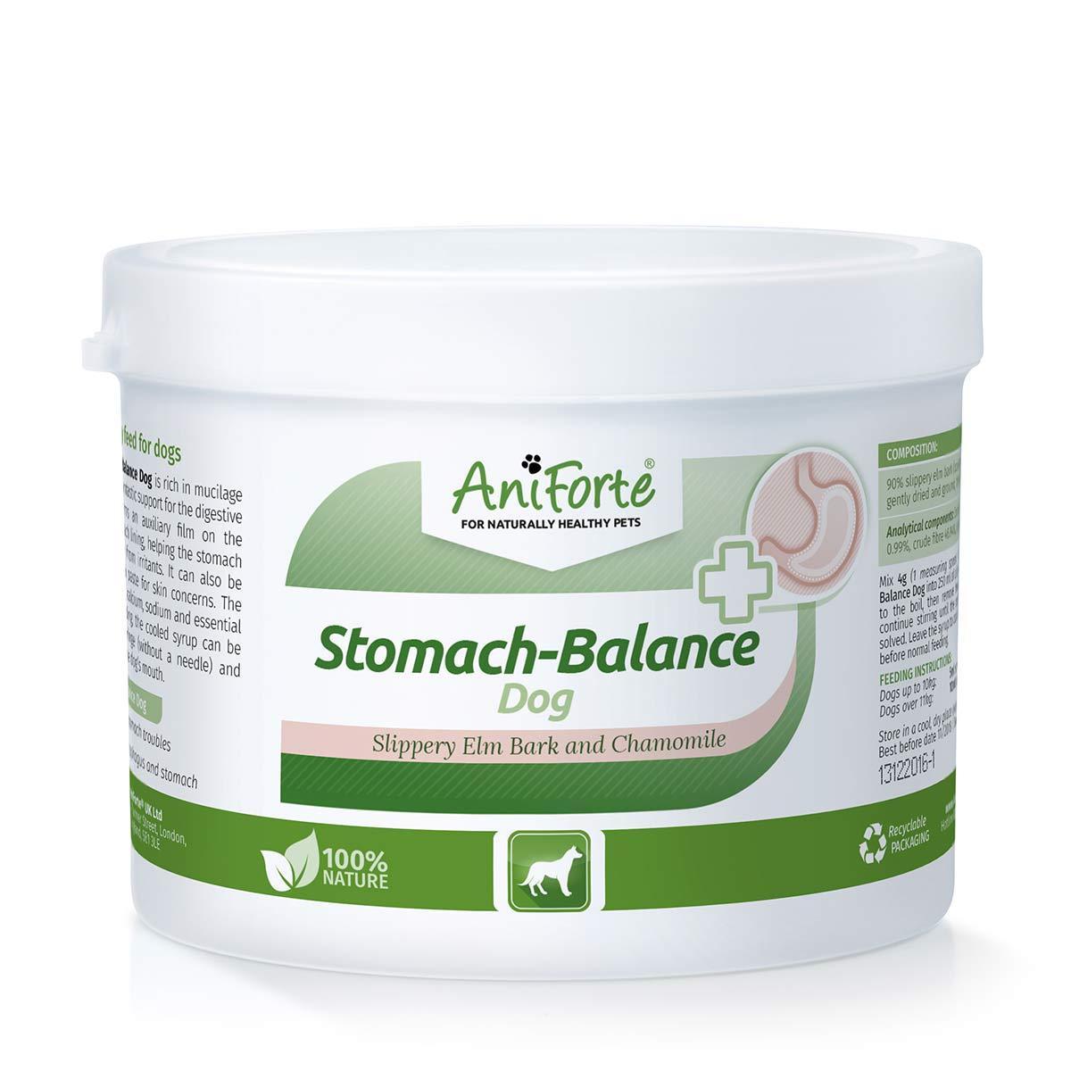 AniForte Stomach-Balance for dogs is a compound feed which contains Slippery Elm Bark, a natural ingredient that is high in fibre and packed with magnesium, calcium, and sodium, as well as vitamins A, B, C and K which can settle and bring balance to your dog’s stomach.